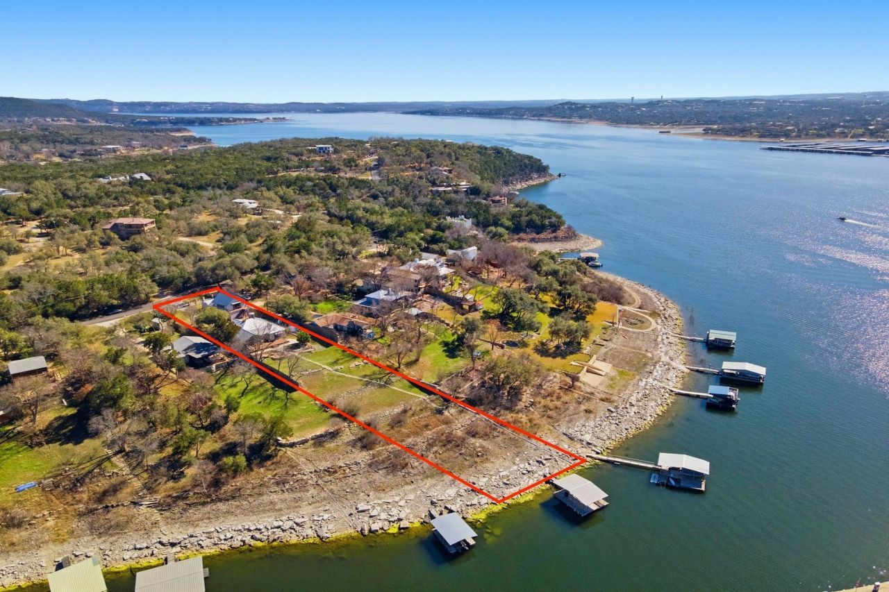 Texas Hill Country meets Lake Travis at this exceptional waterfront retreat! Blending historic character with modern comfort. Breathtaking views of Lake Travis with resort-style living behind a private gate. Open the front door of this stunning 1 story home and you are greeted by walls of windows framing amazing lake views. This home has the original stone walls from its 1946, preserving its historic charm, the thoughtful updates from 1995-2012 added all the modern conveniences. The kitchen is designed for both everyday living & entertaining, granite counters, abundant cabinetry, & huge breakfast bar. Open living & dining areas are flooded with natural light & showcase the water views. A versatile front room can serve as an office or additional bedroom. The primary suite offers incredible lake views, a generous closet, a well-appointed bath, & direct access to the expansive Brazilian hardwood deck. Follow the path to the covered dock, built by Spillar Custom Docks. You will experience Lake Travis & enjoy everything this remarkable 64-mile-long lake has to offer?boating, jet skiing, water skiing, sailing, fishing, swimming, & numerous recreational areas nearby. A natural setting includes native plants & garden area. Car enthusiasts and hobbyists will appreciate the oversized three-car garage, complete with workbench, utility sink, & extra storage. Above the garage, the second-story penthouse suite features a thoughtfully designed layout. Guests can wake up to lake views, prepare morning coffee in the open kitchen area, and relax in the combined living and dining space. Additional highlights include a versatile storage shed, a whole-house generator, and a rainwater collection system?ideal for those seeking self-sufficiency and peace of mind. All of this is conveniently located in the lakeside community of Volente, minutes from the conveniences of the city. An extraordinary opportunity to experience Lake Travis living at its finest! Photos taken 2-23-2026 & NOT AI