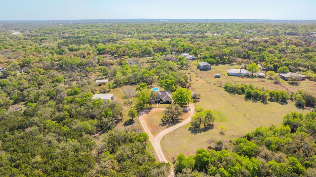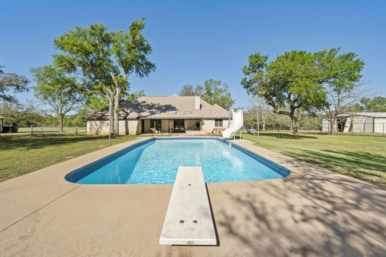 Set on over 3.35 acres with standout potential as a luxury short-term rental investment, 28 Country Oaks presents a compelling opportunity to generate income while enjoying space, privacy, and thoughtful updates just minutes from Austin and Downtown Buda, with quick access to SH-45. The recently updated residence features 4 bedrooms, 3 bathrooms, multiple living areas, and two dining spaces designed to accommodate both personal use and guest stays. Inside, the home features refreshed luxury vinyl plank flooring and crisp interior paint, creating a clean, cohesive feel throughout. The kitchen serves as a central gathering space, complete with Calacatta quartz countertops, white cabinetry accented by black hardware, a farmhouse sink, and updated appliances. The primary suite is generously sized and well-appointed, offering a double vanity, heated towel rack, jetted soaking tub, walk-in shower, spacious closet, and direct access to the back patio through French doors. Outdoors, the property truly shines as an experience-driven asset. A refinished in-ground pool with a slide and diving board creates a resort-style setting ideal for entertaining and short-term guests, all surrounded by expansive acreage that enhances privacy and appeal. Adding to the versatility and income potential is a newly constructed garage apartment spanning over 800 square feet. It features a full kitchen, living area, one bedroom, and one bathroom?ideal for hosting additional guests or creating a separate rental stream. Blending acreage living with modern updates and strong income potential, this property offers a unique opportunity in a highly accessible location.