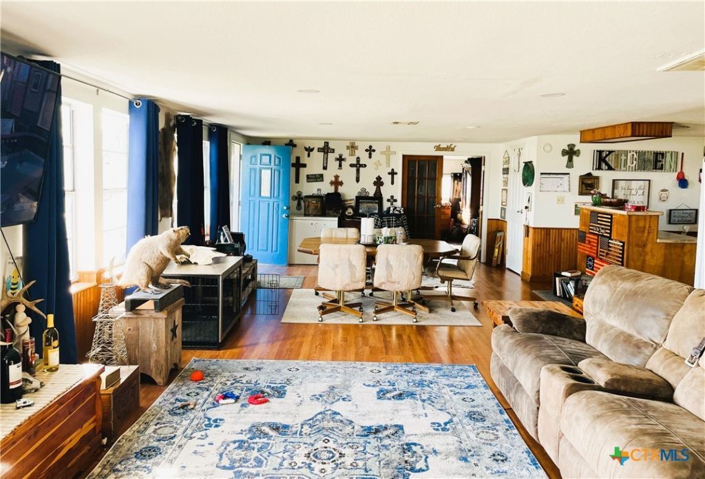 Incredible opportunity to own this river front property, custom built home in the premier Cypress Valley. Offering a 4 bedroom/2.5 bathroom home with an open floor plan and amazing views. Outdoor living shines with a large deck under the home that is an entertainers dream or enjoy relaxing in a peaceful riverfront oasis. The home has many updates that include flooring, metal roof, water well, storage rooms, and RV hook ups. Step from the backyard to the Guadalupe River and enjoy fishing, kayak, canoe, and the tranquil of nature. Perfect for a primary residence, weekend retreat, or vacation rental. Offers Welcome.
